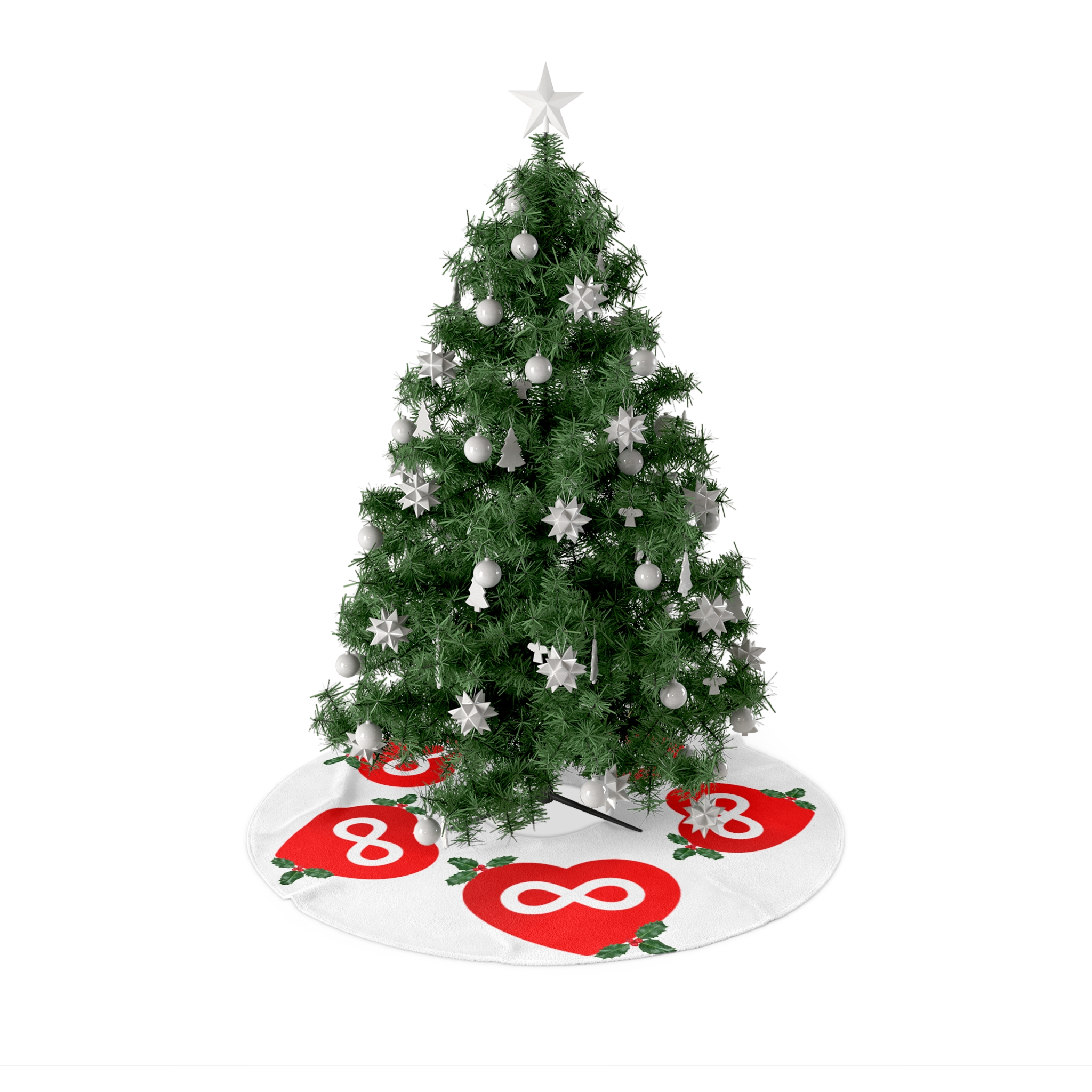 A cozy, festive tree skirt that brings warmth and a touch of whimsical charm to holiday decorating. Plush fleece in a soft cream base cushions your gifts while the bold red heart motifs, each bearing a subtle infinity symbol and holly sprigs, create a joyful, slightly modern twist on classic seasonal motifs. Lightweight and quick-drying polyester keeps the skirt looking tidy beneath the tree, while hemmed edges and pre-constructed sizing make setup and seasonal storage simple. Assembled in the USA, this skirt adds a comforting, handmade feel to living rooms where family traditions and thoughtful details matter.