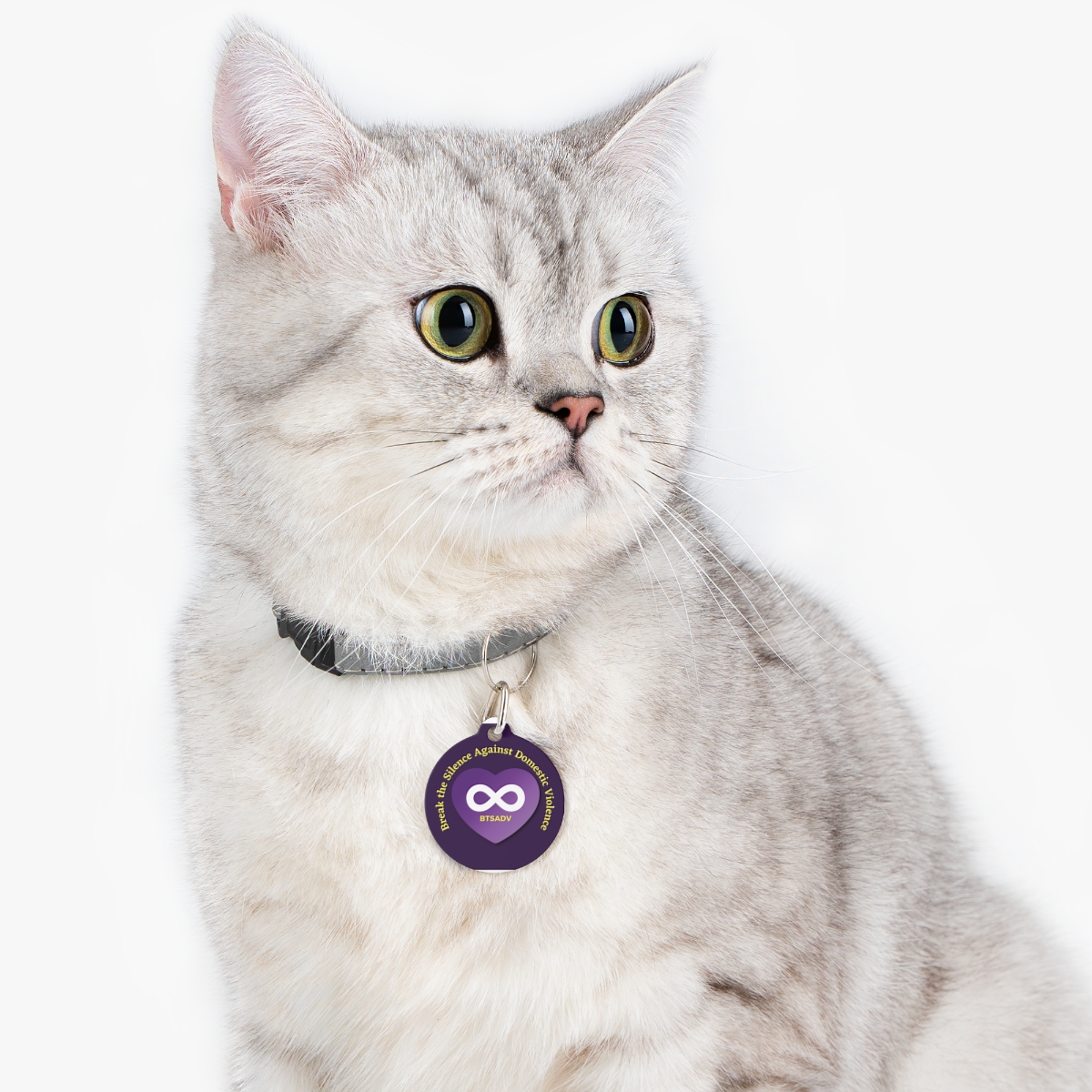 Personalized pet tags provide a fresh way to spice up a furry friend’s collar. The tag and clip are both made of metal. This increased durability comes in handy, as collar pieces can snag on brush, corners, etc. The base color is white, giving designs an even printing surface. Both sides are flattened.